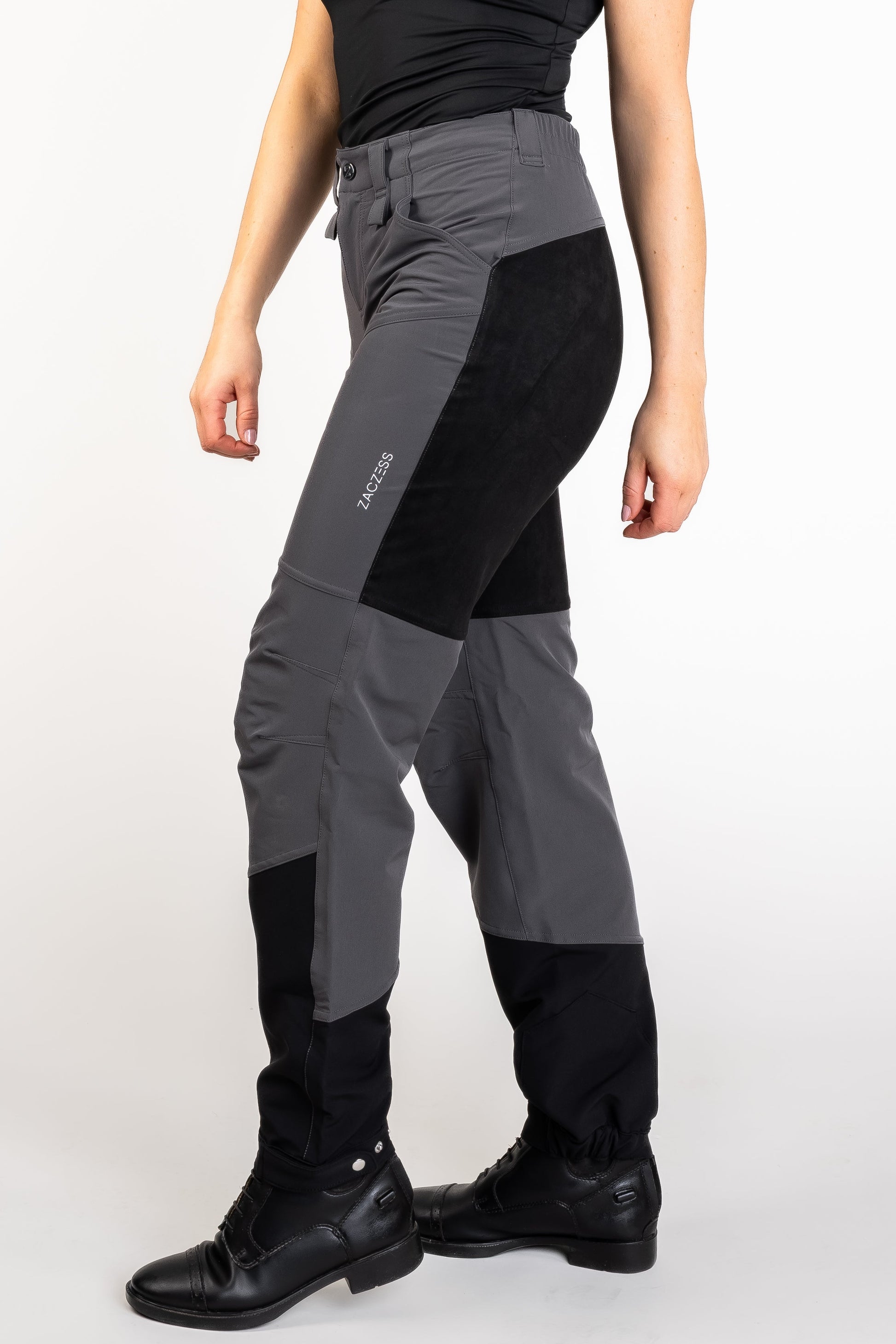 Tillverkade i ett stretchigt och följsamt material ger de maximal komfort vid arbete, ridning eller andra rörelseintensiva sysslor. Sätet är utrustat med FlexSkin-skoning, vilket ger extra grepp om du vill använda byxorna vid ridning.